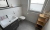 Badezimmer mit Fenster, barrierefreier Dusche und Duschstuhl komfortabel und sicher