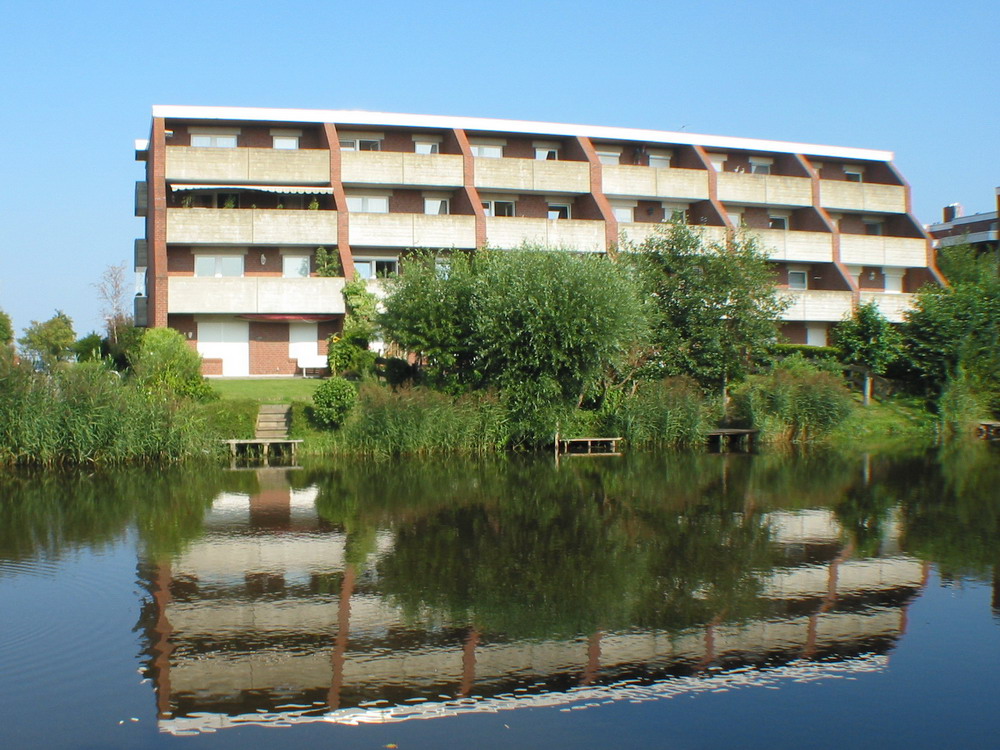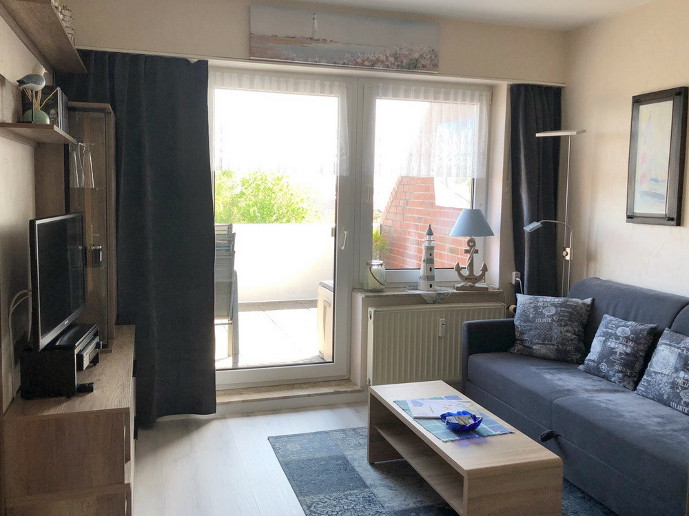 Gemütliche kleine Ferienwohnung in Dornumersiel im terrassenförmig angelegten Haus Wangerooge im 3. Obergeschoss mit Balkon und herrlichem Blick auf das Dornumersieler Tief, keine Haustiere,