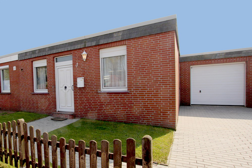 Das Haus liegt in der Bungalowferiensiedlung direkt hinterm Deich in der Straße Im Wellental, nur wenige Gehminuten von Strand, Hafen und Freibad von Dornumersiel entfernt.