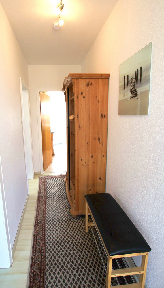 Aufteilung: Gemütliches Wohnzimmer mit Sitzgruppe, Essbereich mit Tisch und sechs Sitzmöglichkeiten. Ein Sat-TV mit Flachbildschirm und DVD-Player sowie eine Stereoanlage mit MC/CD/ Radio stehen für die Gäste bereit. Vom Wohnzimmer aus gelangt man durch die Terrassentür in den Garten.