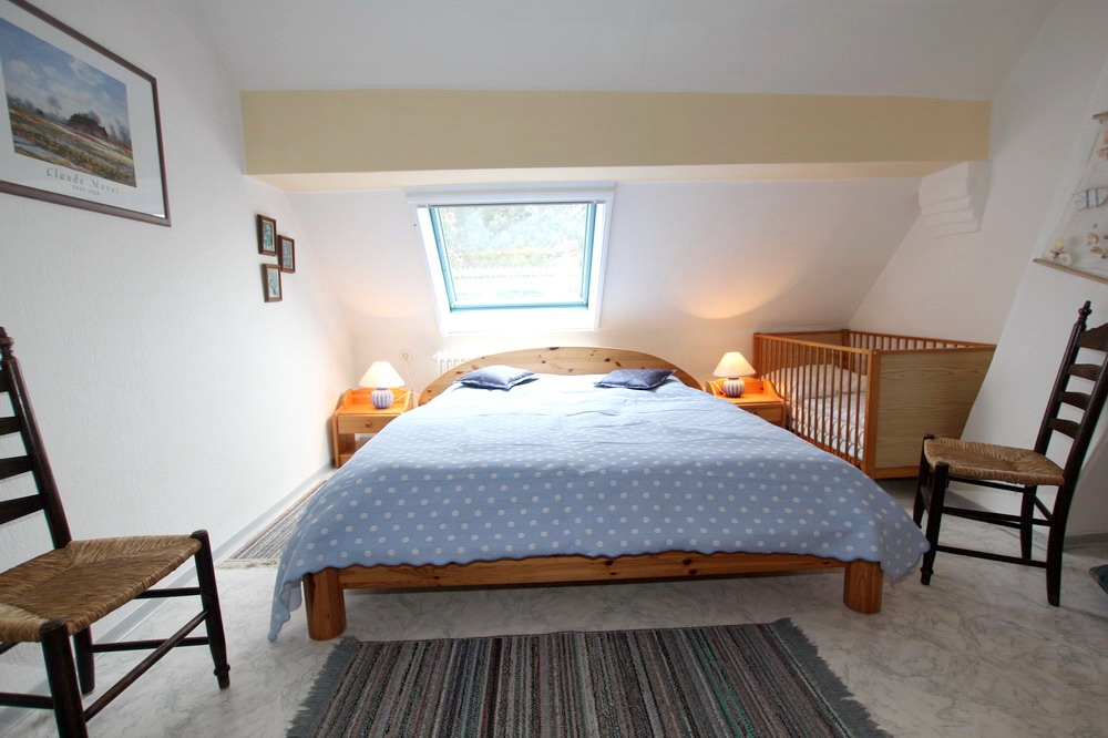 OG: 2 große Schlafzimmer mit je einem Doppelbett und Waschgelegenheit, Kinderbett auf Wunsch.