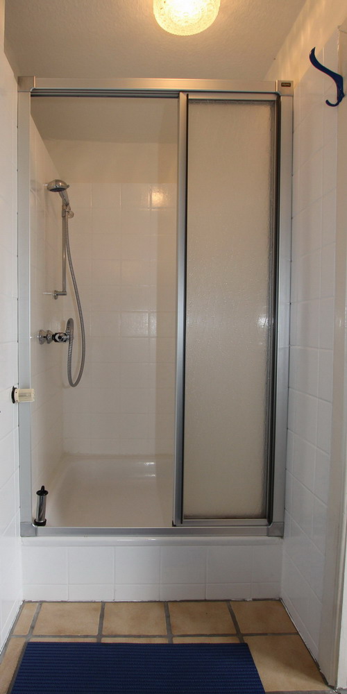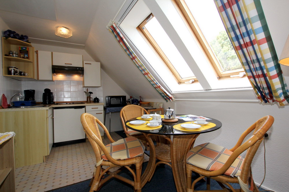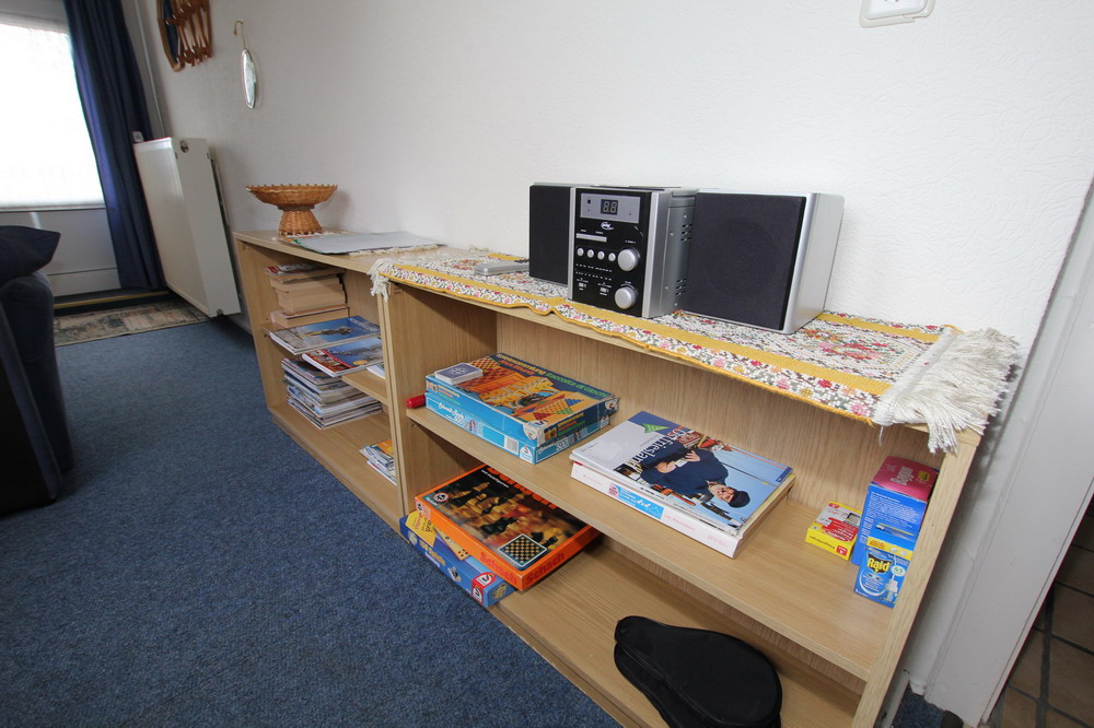 Aufteilung: Gemütliches Wohnzimmer mit Sitzgruppe,Einbauküche und Eßtisch, 1 Schlafzimmer mit 2 Betten und Waschtisch, Kinderbett und Hochstuhl auf Wunsch, sep Dusche. Gäste WC. PKW Stellplatz auf dem Grundstück. Abstellraum für Fahrräder.