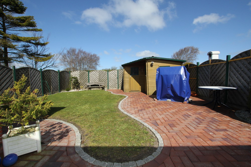 Kühlschrank***, Elektroherd (4-Platten Ceranfeld) mit Backofen, Geschirrspülmachine, Mikrowelle, Kaffeemaschine, Wasserkocher, Waschmaschine, Toaster. Strandkorb, Gartenstühle, Gartenliegen, Grillwagen, Sonnenschirm sind vorhanden.