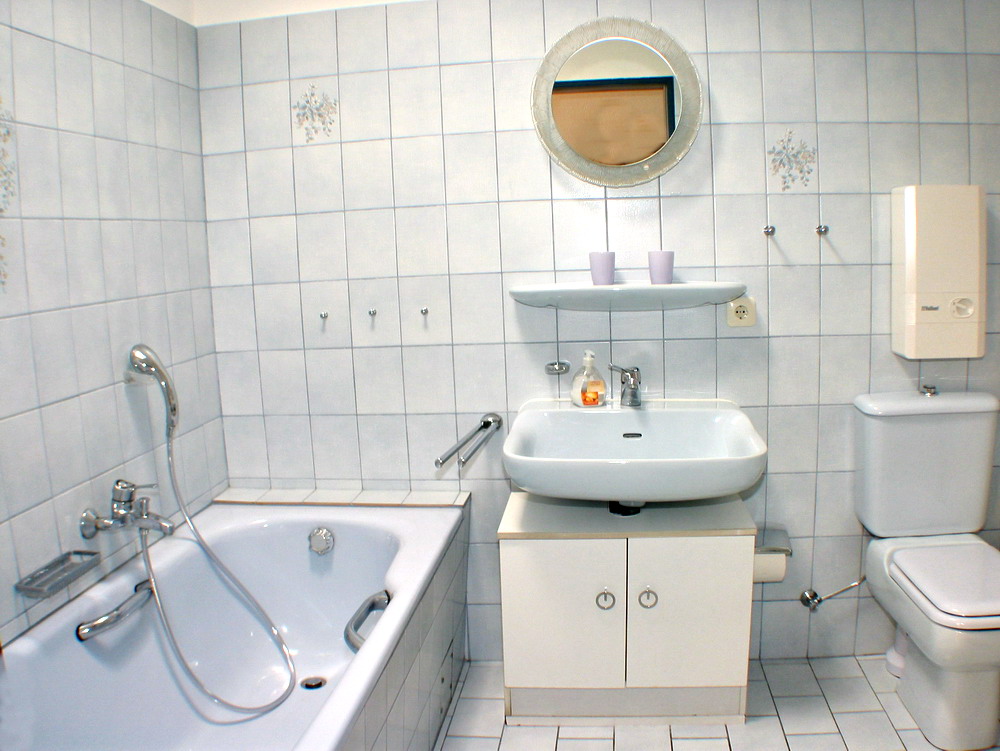 Im Badezimmer mit Wanne, Bidet und WC kann man sich nach einem Strandbesuch für den Abend oder auch am Morgen für den Tag frischmachen.