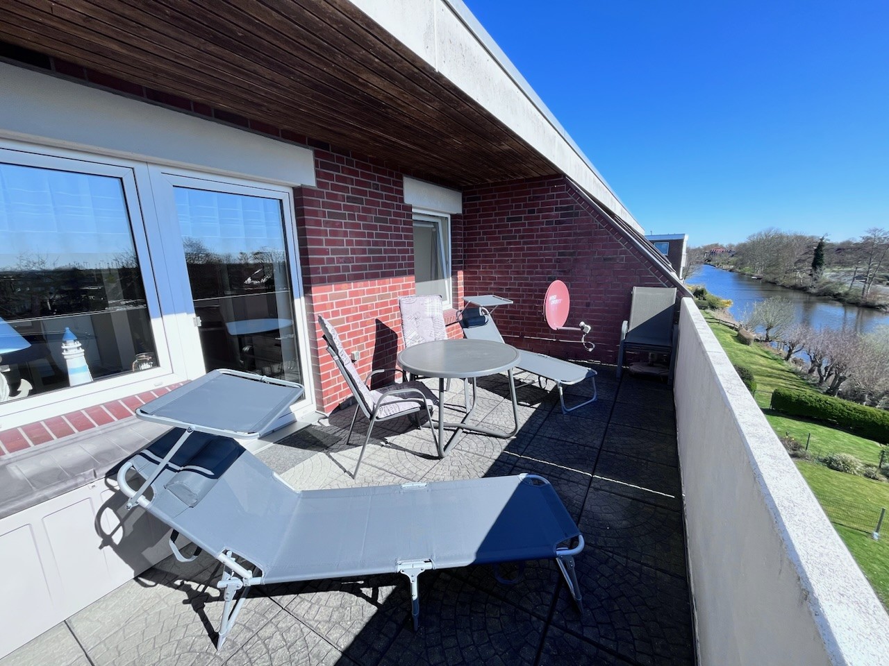 Gemütliche kleine Ferienwohnung in Dornumersiel im terrassenförmig angelegten Haus Wangerooge im 3. Obergeschoss mit Balkon und herrlichem Blick auf das Dornumersieler Tief, keine Haustiere,
