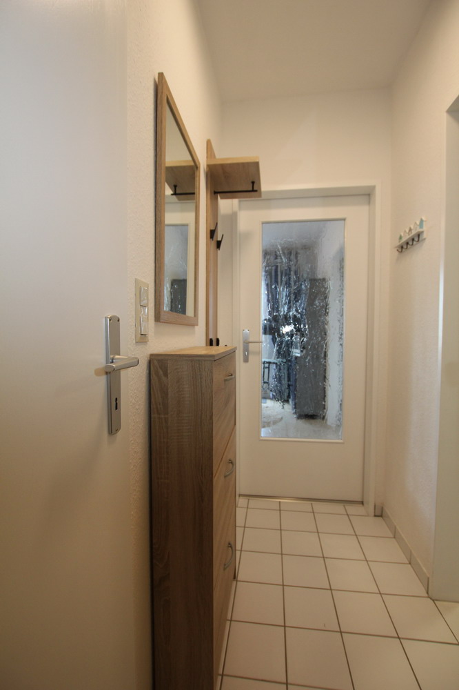 Aufteilung: Gemütliches Wohnzimmer mit Sofa (Schlafsofa), Esstisch und Zugang zum Balkon über die ganze Breite. Integrierte Küche mit gut ausgestatteter Kochzeile, separates Schlafzimmer mit Boxspringbett und Kleiderschrank, Duschbad mit WC , Abstellraum. Zugehöriger PKW Stellplatz vor dem Haus Wangerooge. Gemeinschaftsabstellraum für Fahrräder im Keller.
