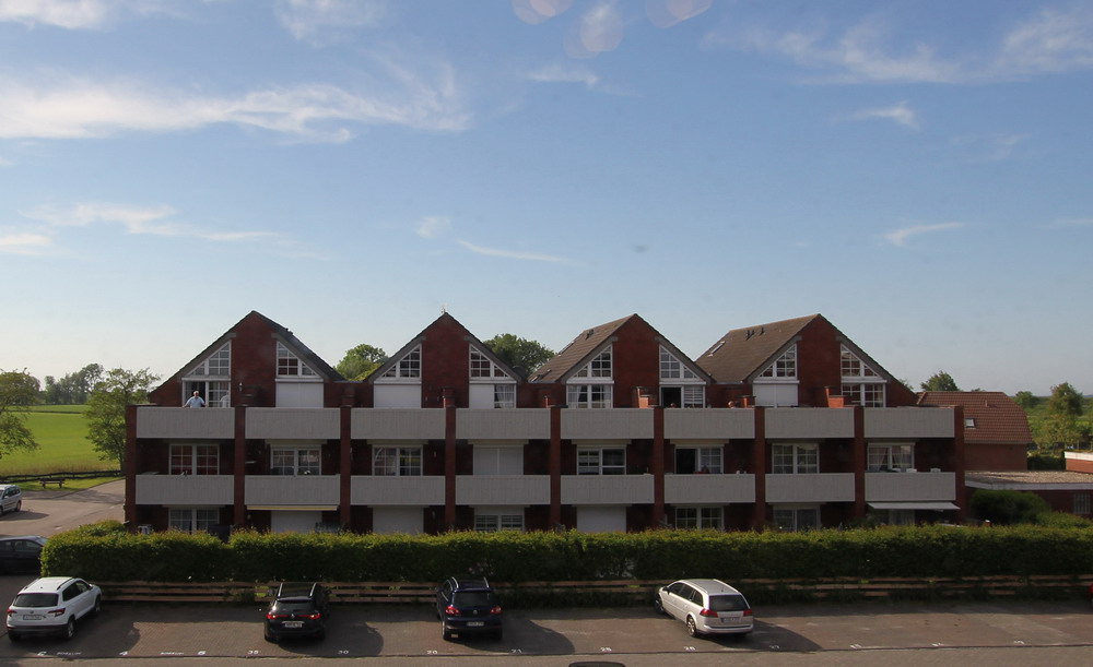 Moderne Ferienwohnung – ideal für 2 Erwachsene und max. 1 Kind -3 Jahre - auf der Rückseite vom terrassenförmig angelegten Haus Wangerooge in Dornumersiel, im 2. Obergeschoss. Balkon zum Parkplatz / Haus Borkum